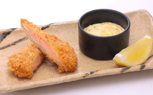 またまるで大トロのように脂がのった「鮭ハラスフライ(1個)」をご用意。2つの異なる鮭を楽しめます。