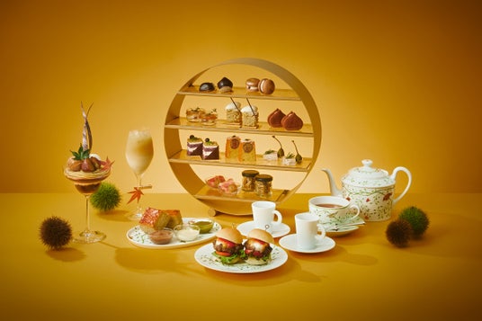 木々の色づきを感じ、秋の実りが豊かに広がるころ、10 月6日(月)から11月9日(日)まで、エグゼクティブペストリーシェフ 吉田修が率いる創造性に満ちたペストリーチームが、秋の世界を描きます。ほくほくしっとりとした食感、やさしい香り、上品な奥深い甘みなど、栗の魅力を存分に楽しめるアフタヌーンティーが初登場します。存在感あふれる丹波栗をはじめ、とろけるように滑らかなモンブランクリームや、つやつや輝く渋皮煮など、栗を愛する人にとって至福の秋の午後をお届けします。黄金色の季節、豊かな彩りが心を満たすひとときを。