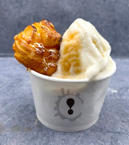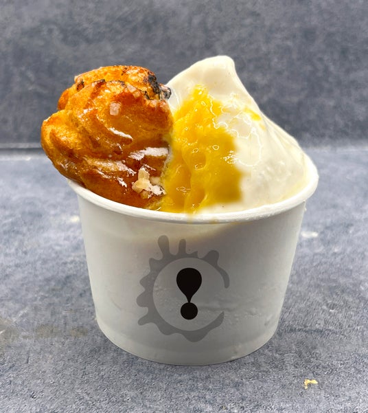 ミルクジェラートブリュレシュークリーム (マンゴー果肉ソース)¥600