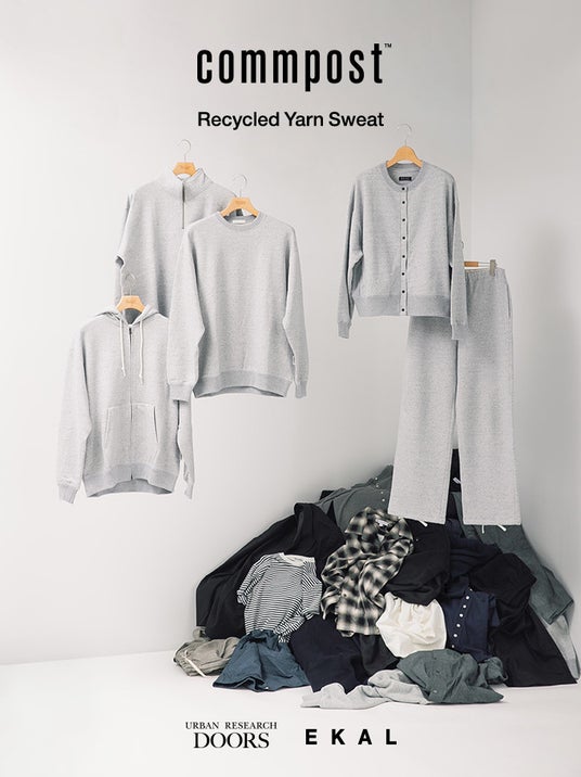 株式会社アーバンリサーチは、当社の「commpost」の取り組みにおいて、自社の廃棄衣料と、今治のタオルメーカー「藤高」の廃棄繊維を原料とした新たな裏毛スウェット生地を開発いたしました。この生地を用いたスウェットアイテム計5型を、「URBAN RESEARCH DOORS」と「EKAL」の両ブランドから、2025年9月9日(火)より発売いたします。