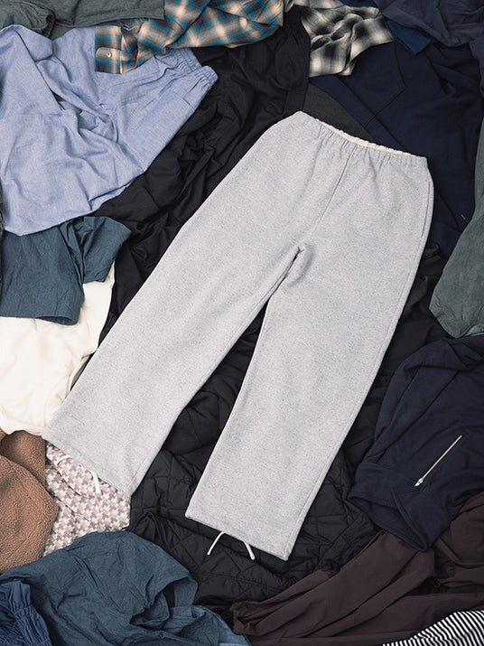 イージーパンツは、ウエストゴムの程よいワイドシルエットで、リラックスした雰囲気を演出します。裾はドローストリング仕様なので、シルエットを調整してさまざまな着こなしを楽しめます。