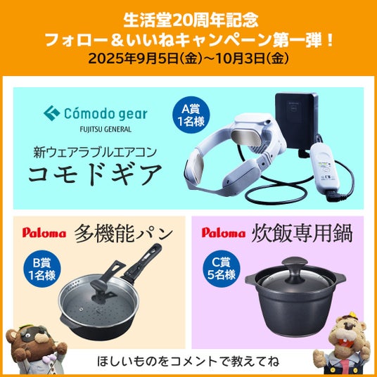 さらに、公式Instagramではネッククーラーや多機能パン、炊飯鍋が当たるプレゼントキャンペーンも実施中。年内にあと数回のプレゼントキャンペーンを予定しており、年間を通じて20周年への感謝をお客様に還元してまいります。