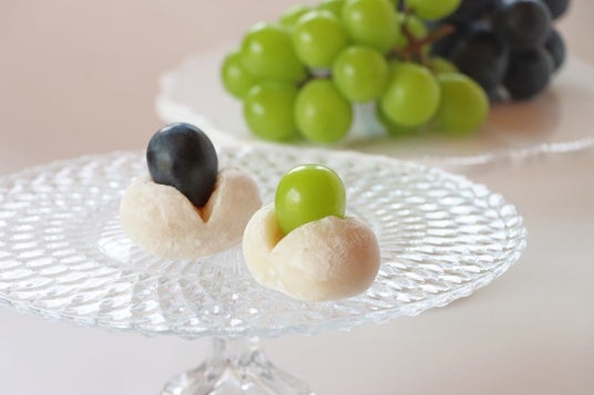 純白の大福にのせられた艶やかなぶどうは、まるで宝石のような存在感。まさに「果宝」の名にふさわしい、目でも舌でも楽しめる逸品です。ご自宅でのお茶うけはもちろん、秋の贈り物としても喜ばれる特別な和菓子となっています。