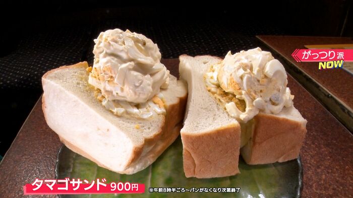 このボリューム満点の「タマゴサンド(900円)」!※午後8時半ごろ〜パンがなくなり次第了
