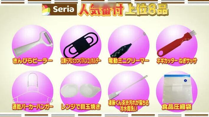 「Seria」マニア200人が選んだ人気商品上位8品には、料理の手間を省くキッチングッズや、アイデア抜群の便利グッズがズラリと並びました。