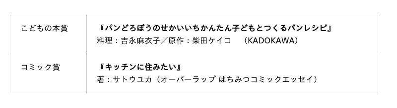2025年度 第12回料理レシピ本大賞 in Japan の受賞作品は次のとおりです。