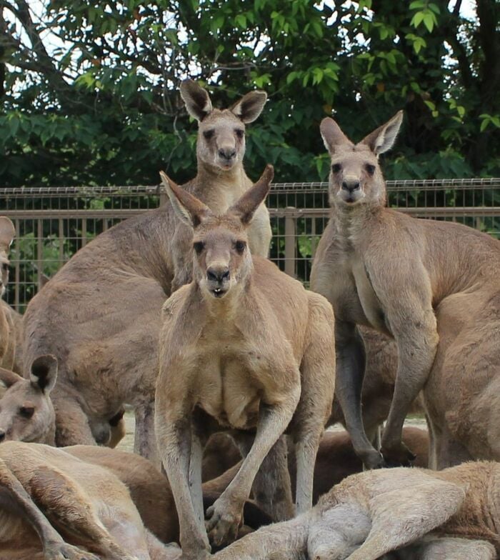 さらに、センターポジションにいるカンガルーの後ろにもカメラ目線のカンガルーが2匹!