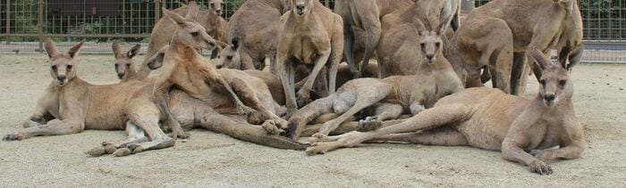 まるでアイドルグループのようなフォーメーションを組んでいるオオカンガルーたち
