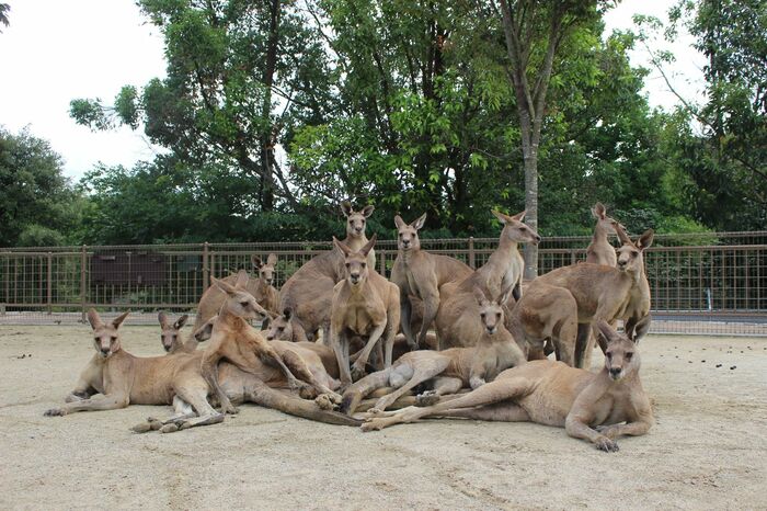 飼育員によると、この集合写真のカンガルーたちは全員オスだそうで、比較的筋肉質な個体が多く写っているとのこと。たしかによく見てみると、センターの個体をはじめムキムキしているように感じます。