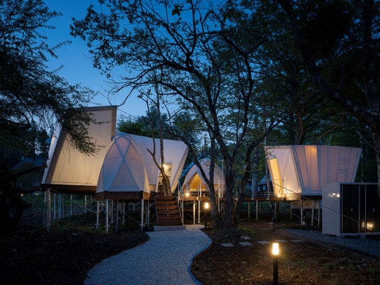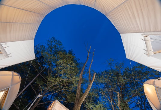 木々とのコントラストによって、より豊かな星空体験を味わうことができます。陽が落ちた後は、間接照明が施設全体を柔らかく灯し、幻想的な雰囲気に包まれることでマインドフルネスにもつながります。