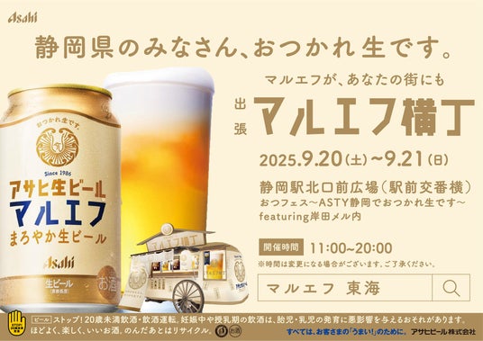 【しずおかのみなさ~ん、おつかれ生です。】アサヒビール「出張マルエフ横丁」がやってくる。まだまだ暑い季節だけどみんなで乾杯して元気になろう!