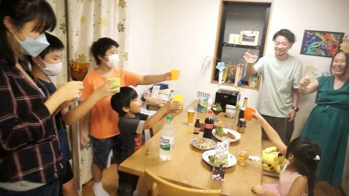 両親と3人の子供たちのほかに、テーブルを囲む2人の男女。実は、この2人は家族ではなく、「困った人がいたら放っておけない」母の愛さん(41)が連れてきた“居候”なのです。