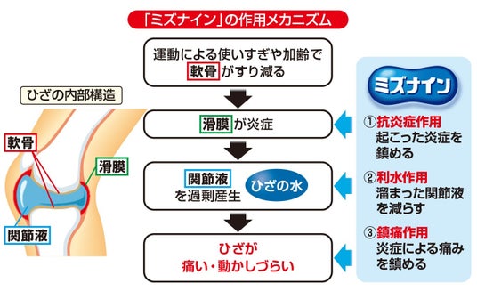 このような背景から、「ひざの水たまり」に対する対処の選択肢の1つとして、ひざの炎症を抑え、ひざにたまった水を減らし、炎症による痛みを鎮める漢方薬「ミズナイン」を開発しました。