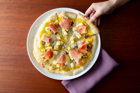 ・シーズナルピザ「サツマイモのクワトロフォルマッジ 腸詰屋の生ハムのせ」
