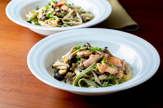 「信州サーモンとキノコの白味噌クリームパスタ 柚子胡椒風味」イメージ