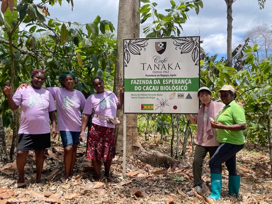 カフェタナカは西アフリカ サントメ島におけるカカオ農園の再生を目指すとともに、そこで働く女性たちの自立に寄り添った支援をしています。