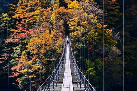 長さ181メートルのスリル満点な吊り橋。南アルプスの茶臼岳へ向かう登山ルートのスタート地点で、県内有数の紅葉スポットにもなっています。