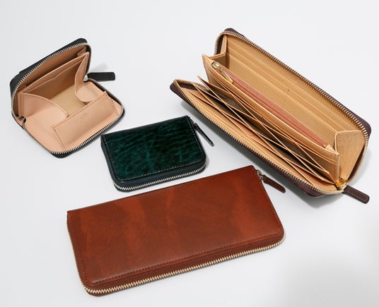 〈CYPRIS/キプリス〉ラウンドファスナーハニーセル長財布/シラサギレザー(W20.5×H9.5×D2.5cm) 33,000円ラウンドファスナーボックス小銭入れ/ルーガショルダー&フルベジタブルタンニンレザー(W10.3×H7.5×D2cm) 17,600円