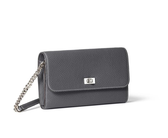 スクエアフォルムとカーブラインが美しさを演出。小さなひねり金具がデザインのポイント。ショルダーストラップを取り付けてバッグとしても使用できる2WAY仕様です。