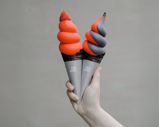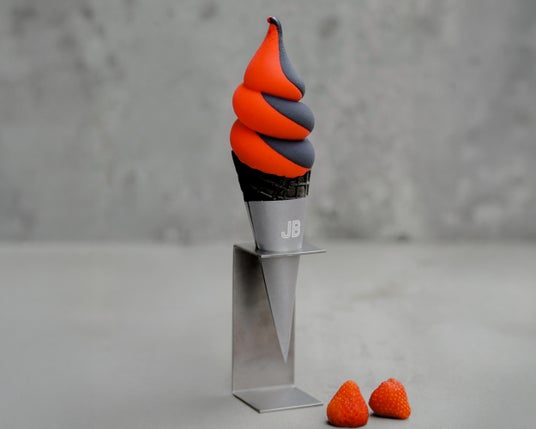 【伏見稲荷の朱を思わせる赤と黒のソフトクリーム】