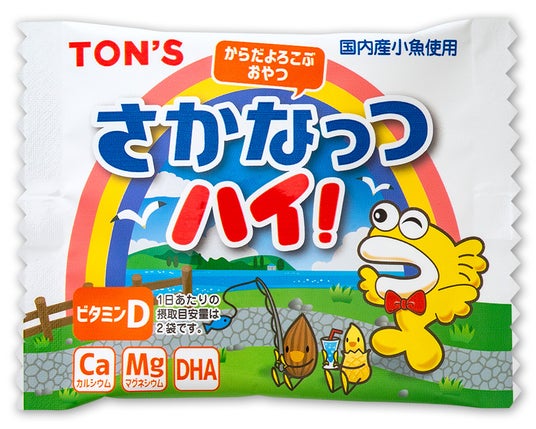 カルシウムやマグネシウム、DHAなどの栄養素をバランスよく含み、“健康おやつ”として学校給食でも提供されてきました。2023年にはパッケージをリニューアル。さかなっつくんがさまざまな場所を旅するイラストをあしらった全18種類の楽しいデザインで展開しています。子どもの勉強のお供としても、ママの美容にも嬉しい“一石二鳥おやつ”です。