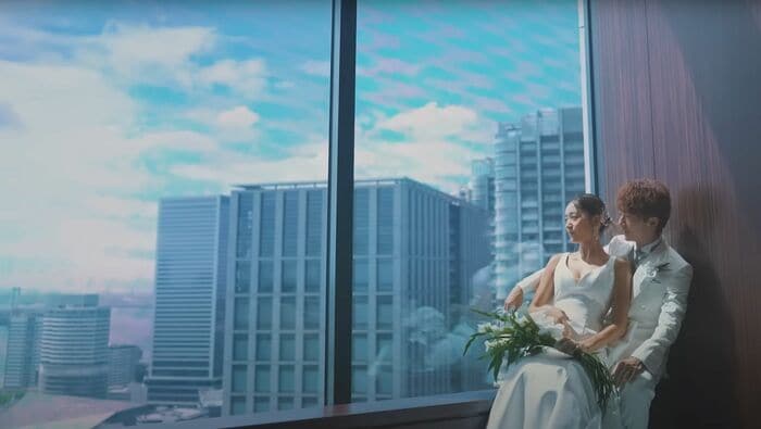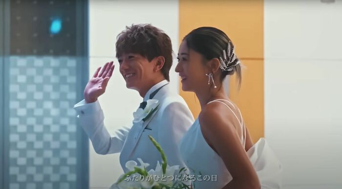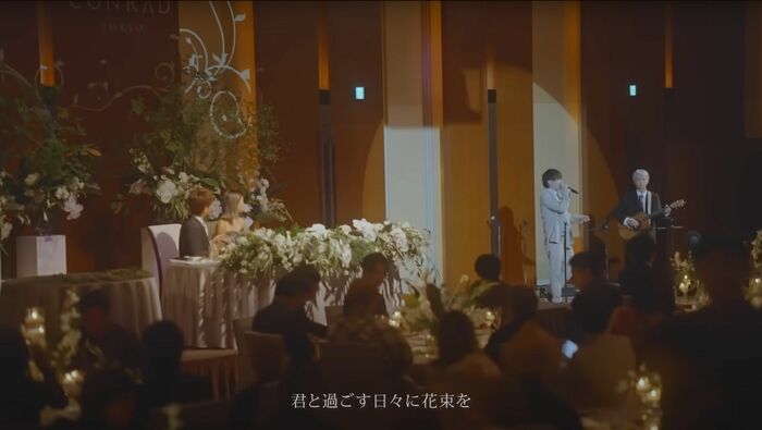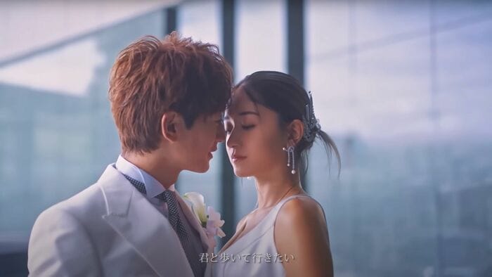 公開されたMVでは、「ふたりがひとつになるこの日」という歌い始めと共に式場に入り入場する大倉さんとみちょぱさんの姿が。