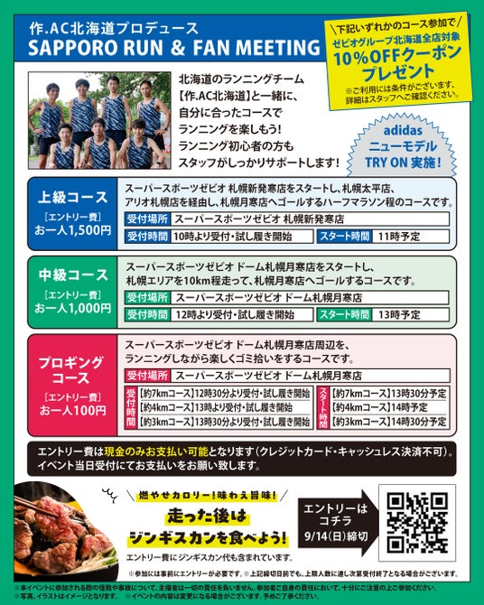 ジンギスカンお食事・ゼビオグループ北海道全店舗使用可能「10%OFFクーポン」をプレゼント