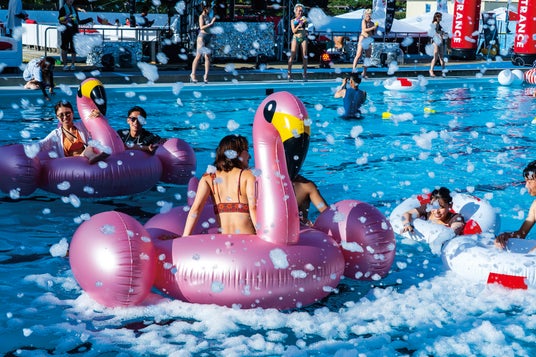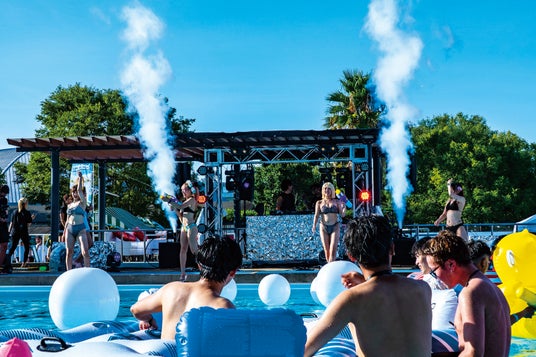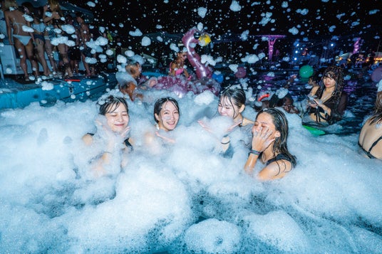 水着で参加するスタイルに加え、泡マシーンやプールに浮かぶフロート、水鉄砲などのアトラクションも登場。ビンゴ大会も開催、フード&ドリンクブースでは夏にぴったりのメニューが並び、まさに「遊べるプールフェス」として参加者を魅了しました。