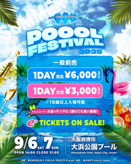 株式会社MUSIC CIRCUSは「POOOL FESTIVAL 2025 Presented by MUSIC CIRCUS」を2025年9月6日(土)・7日(日)の2日間、大阪・堺市の市民プール「大浜公園プール」を完全貸し切りにして開催いたしました。