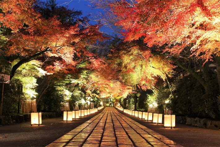 1,000本を超える紅葉が美しく照らされ、まるで絵巻の一場面のような世界を味わう期間限定イベント「あたら夜もみじ(※1)」を鑑賞。