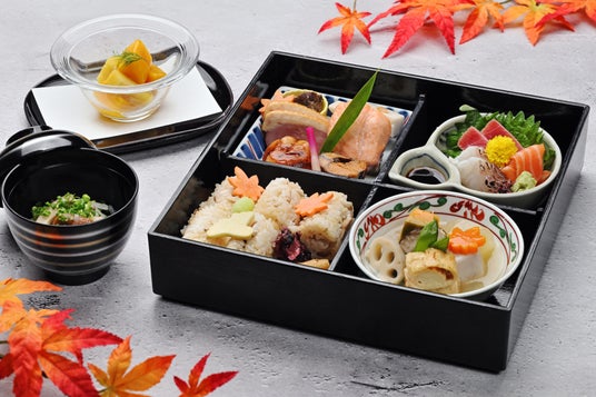 3.船内では、発酵文化が根付く滋賀で営む老舗酒蔵「平井商店」の酒粕や地元食材と秋の味覚を詰めた和食 料理長特製の和弁当とあたたかい甘酒をご用意。