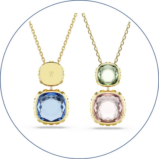 製造過程で発生するクリスタルの破片を再利用し、均一な色合いをもつ新しい製品として生まれ変わったサステナブルなクリスタル。どんな気分の日にも寄りそう、鮮やかなカラーのリバーシブルデザイン。その日のスタイルに合わせたり、他のジュエリーと組み合わせたりして、喜びあふれるスタイルを演出してください。