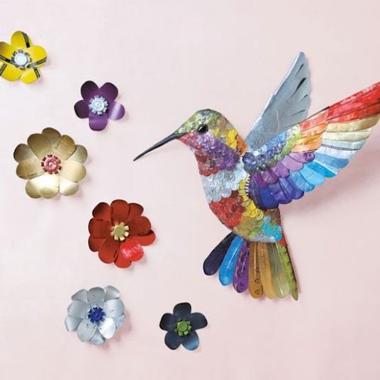 「今、ここ(地球)に生きる」をテーマに、愛する動物の美しさや個性を表現しています。廃材で作るアートを通して、地球上の今ある資源を再生し、価値あるものへと生まれ変わることを感じてほしいという思いを込めて制作しています。「ハチドリ」をはじめ、額装作品を展示。