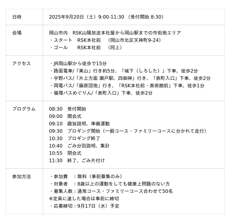 2025年9月20日(土)9:00-11:30予定(受付開始8:30)<開催場所/RSK本社前>