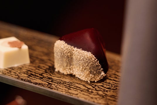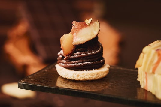 また、ナイトタイムにはTHE THOUSAND KYOTOで初めてのハイティー「Chocolate Voyage Champagne High Tea」を開催。ルイ・ロデレールを含む3種類のシャンパン、ワイン、生ビール、ウイスキー、そして紅茶などフリーフローとともに愉しみいただけます。フードには、栗とラム酒のボンボンショコラや生ハムのセイボリーを追加し、お酒に合うテイストに変更。さらに、「フォンダンショコラ ラズベリーソース添え」には洋酒を使用し、締めの一品として提供いたします。秋の夜長に大人の優雅なひとときをお過ごしください。