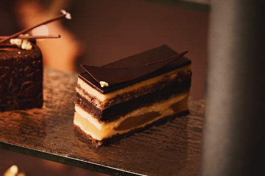 個性的なビターチョコレートの風味を愉しむほろ苦い大人のオペラ。ブランデー香る珈琲のジョコンドにキャラメルバタークリーム、シナモン風味の林檎のコンポート、ショコラガナッシュを層に重ね味わい豊かに仕上げました。