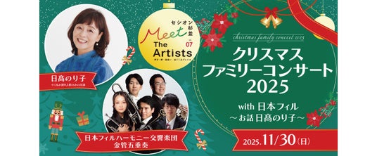 “本物のアーティストと出会える原体験の提供”をテーマにしたシリーズ企画vol.7は、日本フィルハーモニー交響楽団 金管五重奏と声優・日高のり子が贈るクリスマスコンサート。4歳から入場でき、ご家族一緒に楽しめるプログラムをお届けします。