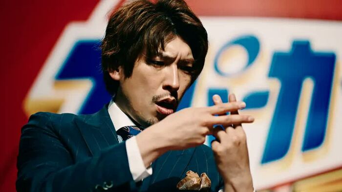 商品名の「スーパーカップ1.5倍」にかけ、“1.5倍”をテーマにした独特な演出に、スーツ姿でチャラさを封印したEXITの2人が挑みます。ばっちりキマったフォーマルな外見を裏切る、シュールなやりとりに注目です。