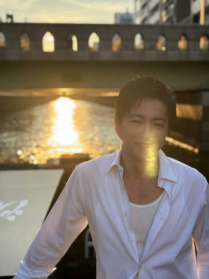 大沢たかお 夕日バックにまぶしすぎショットを披露!