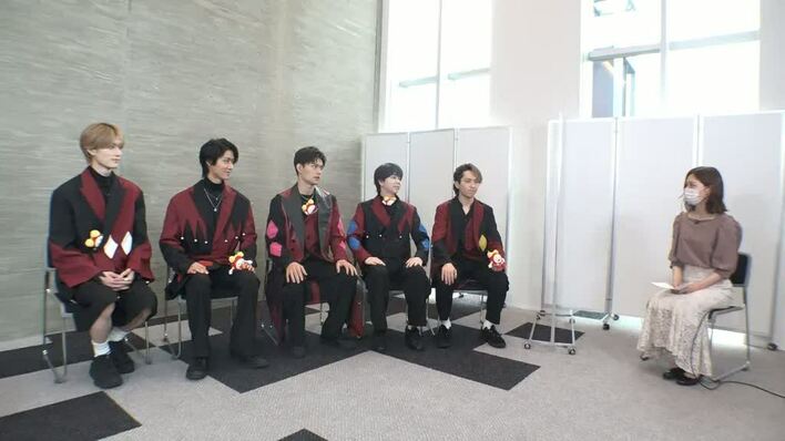 (左から)山中柔太朗 曽野舜太 佐野勇斗 塩﨑太智 吉田仁人 小山内鈴奈アナウンサー