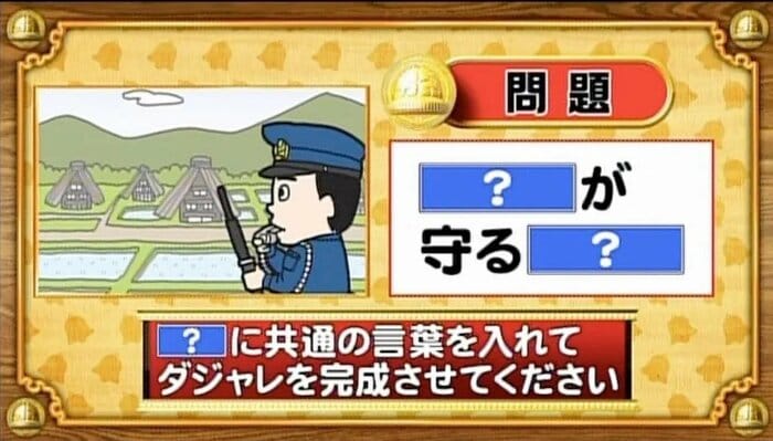 「[?]が守る[?]」。「?」に共通する言葉を入れてダジャレを完成させてください。