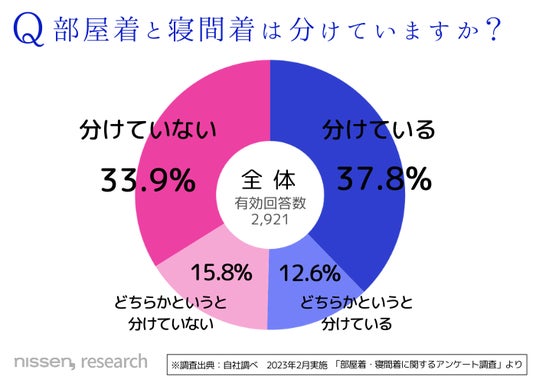 ・「部屋着と寝間着」を分けている派と分けていない派はちょうど半々。