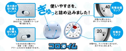 コロタイムは、amazonにて売れ筋ランキング1位を獲得した卓上クリーナー《コロピカ》と同じ“ころん”としたフォルムを受け継ぐ、Co-Goodsの「コロッとシリーズ」第2弾。暮らしの中でほんの少しわずらわしかった「片付け」と「時間管理」を、道具の力でちょっと楽しく、やさしくサポートできたらという想いから生まれました。