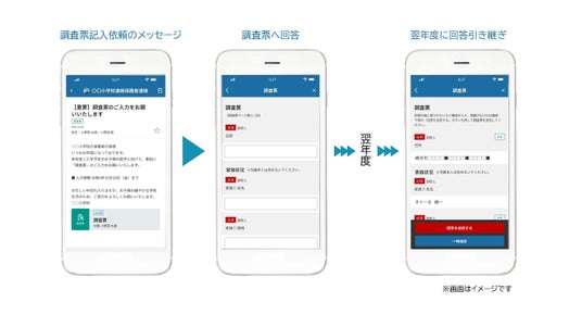 教職員が「すぐーる」上で調査票を登録して配信することで、保護者は調査票に回答することができます。一度回答すれば、次年度以降は変更点のみ回答すればよいので、保護者負担が軽減されます。また、「調査票」チャネルアクションの実装に伴い、より重要な情報をシステム内に保有することとなるため、安全に管理するための強固なセキュリティ対策も併せて実装します。