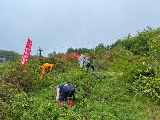 この景観を未来に引き継ぐため、東御市と嬬恋村では年3回の「保全活動」を実施しています。