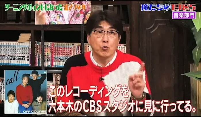 1985年のヒット曲をメドレーで振り返ると、石橋がオフコースの「call」のレコーディングを見学に行っていたと話す。