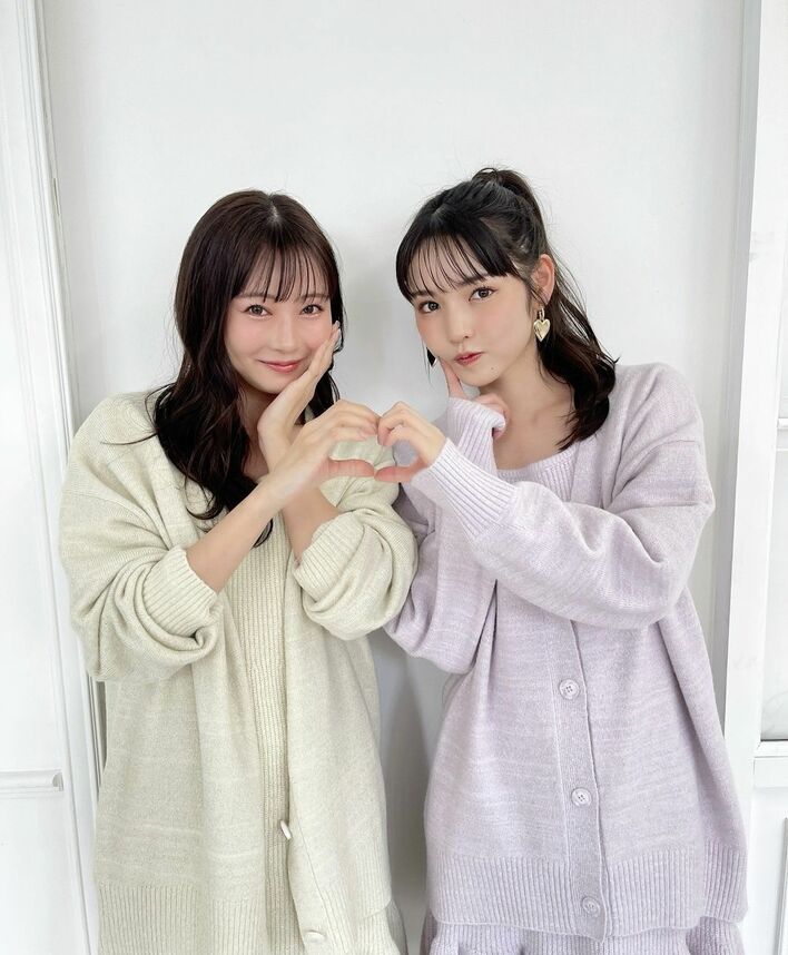 「ロマンティックフェミニンな秋のツインコーデ」がテーマとなっており、道重さんはラベンダー色、渡辺さんはイエローの淡いコーデを着用。2人で手でハートを作っているショットでは、渡辺さんは少し照れている様子…