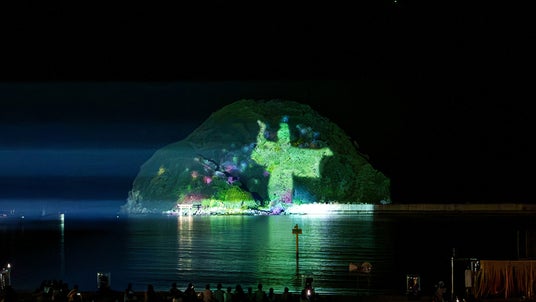 稲積島の伝説を表現するプロジェクションマッピング
