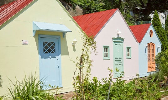目黒駅を出て3分ほど歩くと右手に見えてくるのはヨーロッパの雰囲気が漂う素敵なアパートメント。日がよく当たる、大きな木製の扉が見えてきたらファッジウィークエンドの世界はすぐそこです。会場に入ると目の前に広がるのは、ヨーロッパの街角のようなおしゃれなSHOPやカフェが並ぶ1つのSTREETです。奥には教会もあり、会場内のどこを切り取っても絵になる素敵な空間です。夕方には街灯も点灯し、また違う雰囲気を楽しめます。