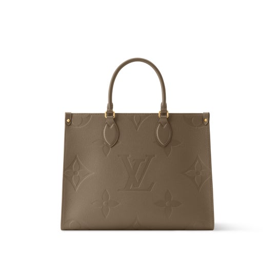 あらゆる装いを引き立てる今シーズンならではの「オンザゴー MM」。カウハイドレザーのトリミングと上品なゴールドカラーの金具でアクセントを添えました。普段の必需品に加えてノートパソコンも収納できる広々とした内装を備え、複数のポケットやミラー付きの取外し可能なネームタグがあしらわれています。